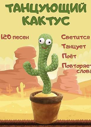 Описание Танцующий кактус – новая музыкальная игрушка для вашего ребенка – хит Тик-Тока 2021р. Игрушка представляет собой куклу, шевелищую петушную куклу в форме кактуса в горшке с большими глазами и улыбчивым лицом. Игрушка танцует и поет кактус очень весело танцует, светится и воспроизводит 120 мелодии. Так же она способна запоминать ваши слова и повторять их, забавно танцуя при этом. Плюшевый танцующий кактус – это лучший подарок, который надолго увлечет как детей, так и взрослых и подарит кучу радостных эмоций. Характеристики мягкой игрушки, что говорит Танцующий кактус: - Материал: плюш - Размер игрушки: 32 см. - Функционал: выполняет 120 песен, светится, танцует, повторяет слова - Источник питания: 3 батарейки типа AA (в комплект не входят)