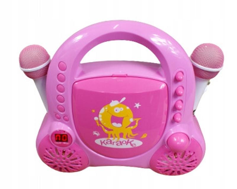 Основная информация: - Развлекательная детская караоке-система со встроенными стереодинамиками и двумя динамическими ручными микрофонами. - Микрофонная секция с отдельной регулировкой громкости, эффектом эха, регулировкой баланса. и функцией A.V.C. - Высокая мобильность благодаря встроенному аккумулятору - можно использовать где угодно - Закругленный корпус без острых углов, с практичной ручкой сверху - Разъемы: 2 разъема 6,3 мм для микрофона, 1 вход AUX 3,5 мм. - Типы воспроизводимых дисков: CD, CD- R, CD-RW, Multiplex CD. - Светодиодный дисплей. - Большой регулятор громкости. - Функция воспроизведения. - Воспроизведение в случайном порядке. - Защитная крышка динамика. - Источник питания: 9 В постоянного тока, 1 А или аккумуляторная батарея C. - 1 устройство. - 1 блок питания - 2 микрофона - размеры: 29,5 x 26,5 x 13 см ( ширина х высота х глубина) - Высота микрофона: около 16 см - Диаметр микрофона: около 2 см - Длина кабеля микрофона: 2 м - Вес: около 1,5 кг -