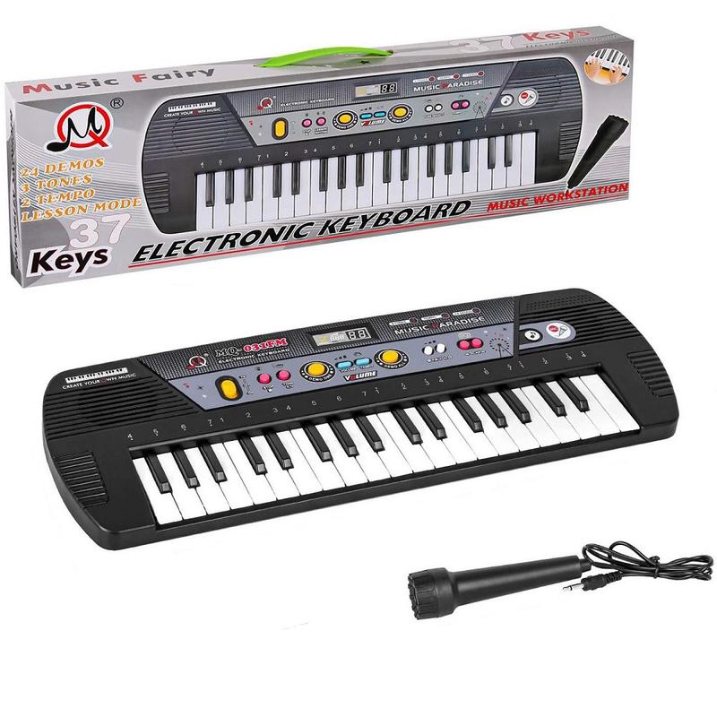 Синтезатор дитячий виготовлений у чудовому реалістичному дизайні, і дитина обов'язково захоче пограти на ньому. А під час натискання на різні кнопки дитина розвиватиме слухове сприйняття, почуття ритму та такту. Особливості: • 37 клавіш; • 24 мелодії; • 3 тона; • 2 ритма; • 2 рівні гучності; • регулювання звуку; • контроль темпу; • FM-радіо; • мікрофон; Працює від 4 батарейок 1,5V "AA" (не входять до комплекту). Розмір синтезатора 47 * 4.5 * 16 см. Розмір коробки 50 * 5 * 16 см.