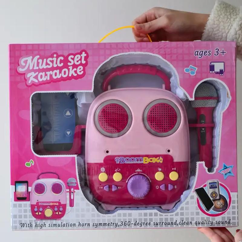 Колонка з Мікрофоном і Bluetooth для початківців, розвивайте музичний талант дітей у ранньому віці, особливо підходить для немовлят і малюків. Перший крок до того, щоб стати музичною зіркою. Поліпште слух, тренуйте координацію рук і очей, покращуйте розвиток пам'яті мозку. Іграшка чудова ідея подарунка на день народження дитини. Колонка працює від батарейок. 8 клавіш із музикою, мікрофоном. Мелодії, світлові ефекти, Звукові ефекти Розмір коробки 39*11*32 см