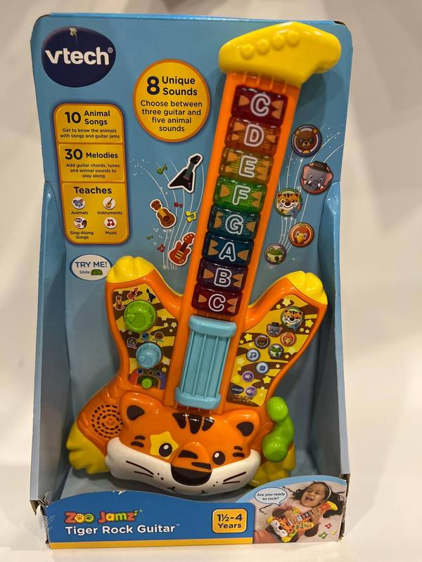 Игрушечная электрогитара имеет множество интересных звуковых режимов и яркий дизайн в тигровой расцветке. Есть кнопки, издающие звуки различных животных, можно добавить эффекты, сыграть в стиле блюз, кантри, рок. Есть варианты выбора акустической или электрогитары, а также режим искажения. Вместо струн есть рельефный валик, который необходимо крутить, чтобы извлечь звук. Гитара работает от стандартных батареек. Это яркий интерактивный подарок на любой праздник. Требуется 2 батарейки АА; батарейки включены только для демонстрационных целей; новые батареи, рекомендуется купить для регулярного использования. Удобные для родителей функции включают регулятор громкости для более тихой игры, прочную конструкцию и автоматическое отключение. 1020 Смотрите другие Мои объявления! В наличии много одежды, обуви и игрушек. Отпрашиваю Укр или Новой почтой за счет покупателя. Самовывиз м.Рубное (центр, магазин CoolKids) Инст. coolkids_rivne