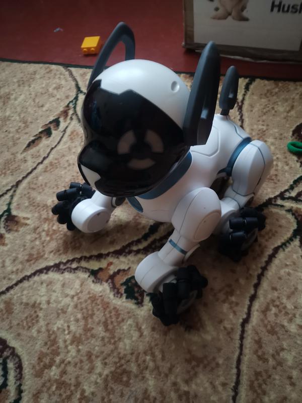 Робот собака CHIP отWOWWEE ничем не хуже обычной собаки,дети от нее в восторге,выполняет голосовые команды, гавкает,светятся глазки, играет с мячом,догоняет и приносит или будет отбивать когда ему бросаеш,сам садится на зарядку но двух акумуляторов 18650 предостаточно для игры,но изюминка этой собаки смарт часы из которых можно полностью управлять ею и она будет следовать за ними,приносить к ним мяч и знать где хозяин,в придачу есть приложение где можно настроить громкость,скорость,покормить собаку или задать любую команду.Идеальное состояние все работает,родная упаковка как только из магазина нигде не помята