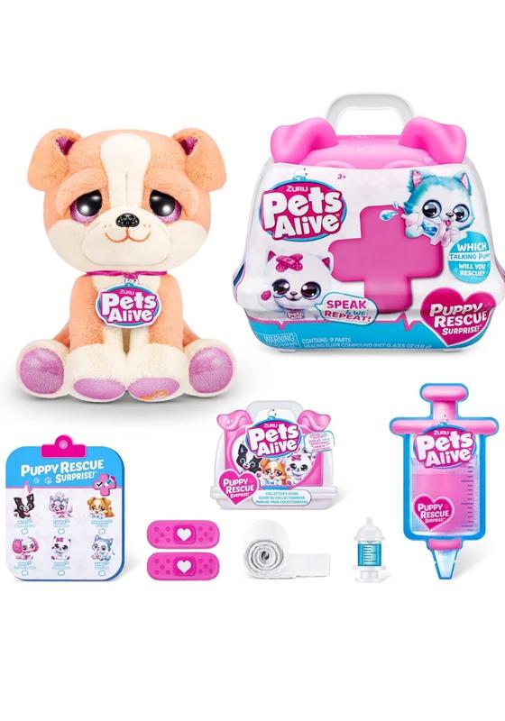 Разговаривайте со своим щенком, чтобы услышать, как он повторяет вам. Исцелите своего щенка: используйте шприц и лечебный эликсир, чтобы помочь другому щенку вернуться к здоровью. В лечебном наборе есть бинт, наклейки и многое другое. В комплект входит: 1 перенос для домашних животных, 1 щенок, 2 наклейки на повязки, 1 повязка, 1 состав лечебного эликсира, 1 карточка проверки здоровья, 1 шприц, 1 инструкция. Возьмите своего питомца куда угодно: используйте перенос для домашних животных, чтобы взять своего пушистого друга с собой в дорогу! Идеальный подарок для любого ребенка, который любит домашних животных. Вылейте щенка и играйте с настоящим питомцем!