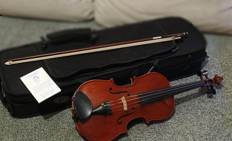 Скрипка Stentor Conservatoire – это выбор музыкантов среднего уровня и выше Изготовители часто рекомендуют эту модель как "инструмент на ступеньку выше". При высоком уровне качества и звучании стоимость Stentor Conservatoire остается более чем умной. Инструмент изготавливается вручную из отборных музыкальных пород древесины, комплектуется высококачественным деревянным вкуснем и фирменным кейсом. Послушать можно по ссылке ************************************************** Основные характеристики: Размер 1/2 Ручная работа Дека из цельного клена, верх из цельной ели Гриф из цельного клена Накладка грифа и колки из черного дерева Композитный струнодержатель с микронастройкой Подбородник типа Teka Струны из синтетического волокна Покрытие лаком типа ShellaxTM В комплекте стильный прямоугольный кейс типа Deluxe (с отсеком для нотных тетрадей, ремнем для переноски) Деревянный смычок (доборная древесина,колодка из черного дерева, натуральный светлый лошадиный волос месяц назад был заменен) Разыгранная скрипка, качественный звук, очень красивый инструмент + мостик в подарок Послушать можно по ссылке ************************************************** Ответим на вопросы в личные