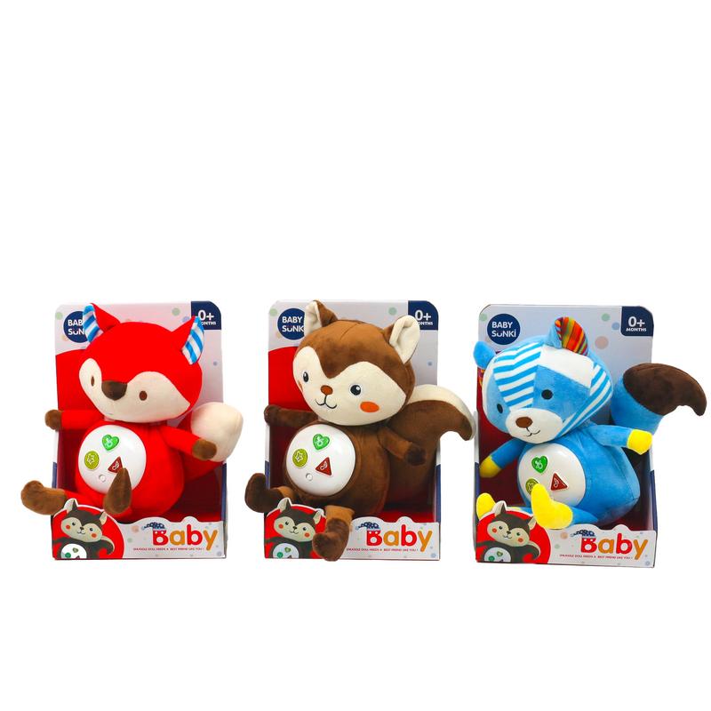 Іграшка музична "Тваринка", 33 см, 3 види. Музика, звуки, світло. Живлення - батарейки. Матеріал - плюш. Упаковка - коробка. Розмір - 19х12х27 см. Вік - від 0 до 1 року.