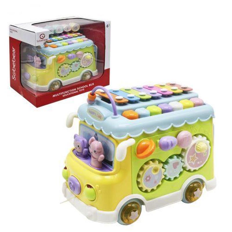 Інтерактивна іграшка "Автобус" стане чудовим подарунком для малюка. Іграшка включає такі елементи (5 активних сторін): ксилофон, сортер і 6 кубиків, шестерні і багато рухомих елементів. Тренує логіку, увагу, уяву та дрібну моторику. Розмір іграшки 25х18х14 см. Виконана з якісного та міцного пластику. Для дітей від 6 місяців. Упаковка: Коробка Колір: Різнобарв'я Вага з упаковкою: 1200 г Габарити в упаковці: 19 x 30 x 28 см Габарити без упаковки: 14 x 25 x 18 см Країна виробник: Китай Матеріал: Пластик Комплектація: Ксилофон-сортер та 6 кубиків