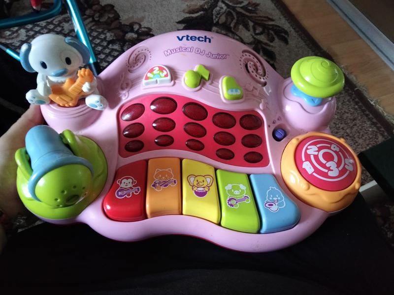 Очень Крутое пианино, есть 3 режима работы: музыка, при нажатии на каждую клавишу идёт отдельная музыка; пианино и режим обучения - цвета, животные, инструменты. Есть 2 громкости, барабан и дополнительный рычаг со звуками. Собачка танцует и при нажатии на нее, тоже ожидает отдельная музыка. Работает на 4х батарейках, одно только, дети оторвали провод на микрофоне) Микрофон только для декора) могу скинуть видео как работает.