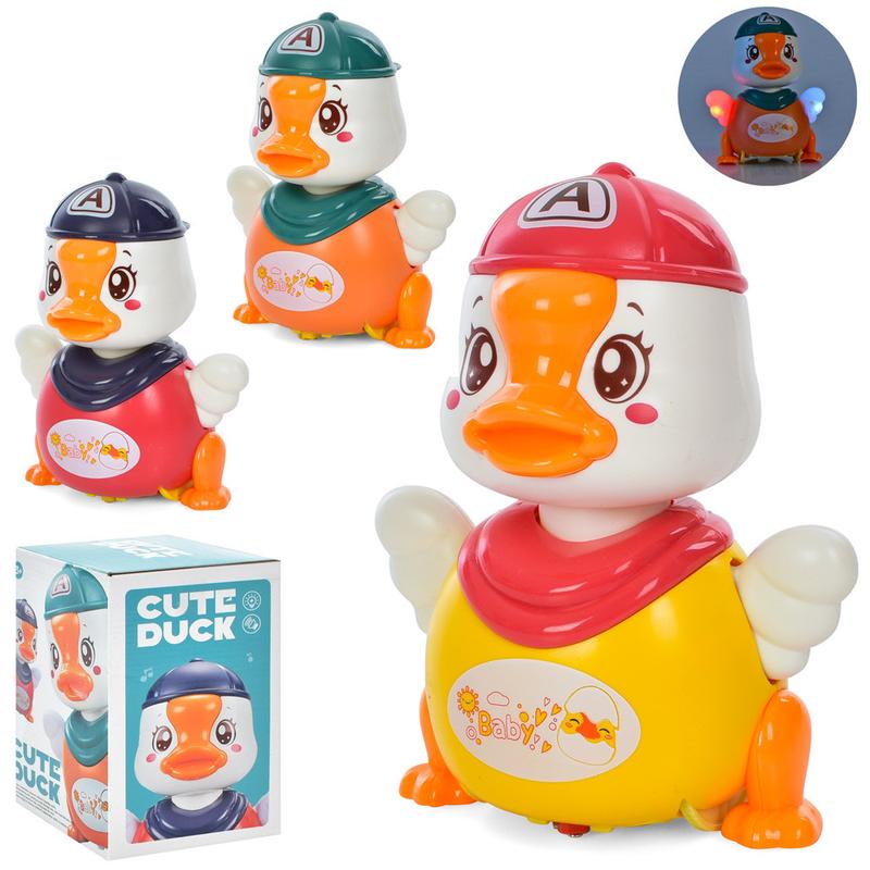 Интерактивная игрушка утенок 986 А станет незаменимым другом для вашего малыша. С музыкальной игрушкой некогда скучать, ведь она постоянно находится в движении, приплясывая под ритмическую музыку. Особенности: - отвечает техническому регламенту безопасности игрушек; - игрушка выполнена из качественных полимерных материалов; - музыкальная игрушка утенка оснащена переливающейся подсветкой; - обладает звуковыми эффектами; - машет крылышками и двигает головой; - игрушка имеет яркий и привлекательный дизайн; - оборудованный колесами свободного хода; - есть кнопка включения; - работает от 3-х батареек АА. Коробка - 17*111*11см