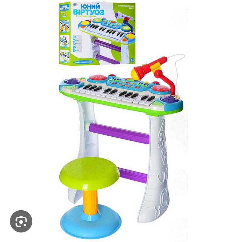 Дитячий Синтезатор 🎹Юній віртуоз🎹 - 2 октави — 24 клавіші - вибір ритму🎚 - вибір інструменту для імітації🎷🎸 - можливість запису💽, редагування та відтворення своєї музики🎼 - мікрофон🎤 📏Розмір упаковки: 46 х 44 х 12 см