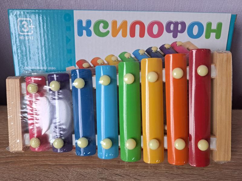 Деревянная игрушка Ксилофон MD 0713 8 тонов, основание дерево, пластины-металл, 2 палочки, коробка 24,5-13-4см.