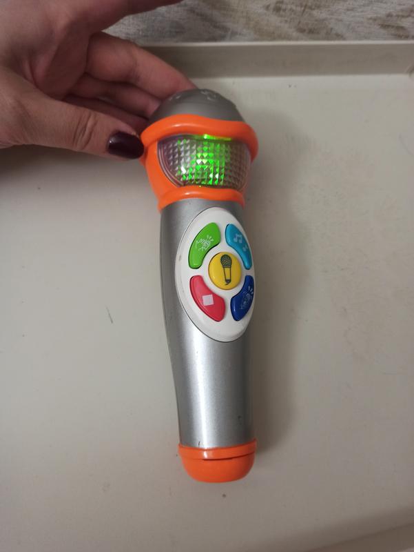 Микрофон Winfun звуковые эффекты («аплодисменты», «звуковое эхо»), встроенные фоновые мелодии, мигающий свет, кнопка включения
