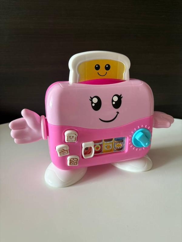 Музична іграшка місіс Тостер Давайте приготуємо смачні тости Натисніть на хліб і натисніть кнопку, щоб він вискочив Світлі/темні кнопки тостів 3 улюблені смаки: варення, мед і арахісове масло Ручка таймера та світлодіодне підсвічування Веселі фрази, звукові ефекти і веселі мелодії Стан дуже гарний, наближений до ідеального. Ціна 288 грн.🏷️