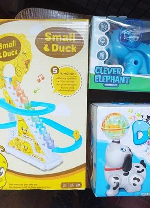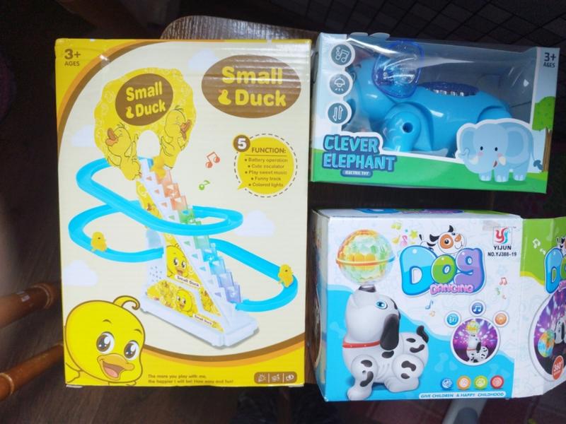 Продам музыкальные игрушки. 1 карусель, все работает, играли недолго. 2- собачка с шариком, играет музыка, ходит и крутится, шарик светится. также все работает, но порой извлекается магнитик. 3- музыкальный слоник( новый), ходит и играет музыка. цена за все ( но можно отдельно).