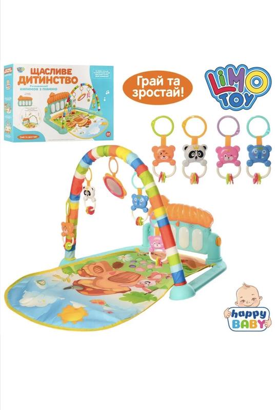 Яскравий килимок з фортепіано буде рости разом з Вашою дитиною. Він зможе грати в нього трьома різними способами: Килимок має узголів'я з прикріпленими 4 брязкальцями і дзеркалом. Якщо натиснути ручками або ніжками на кнопочки піаніно, дитина почує приємні мелодиӥ. Для діточок які вміють сидіти, то це ножний піаніно може трансформуватися в столик. Іграшки на дузі знімаються. РОЗМІР: 75 см (д) x 65 см (в) - 41 см (ш)