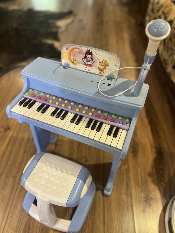 Піаніно зі стільчиком і мікрофоном для дітей.