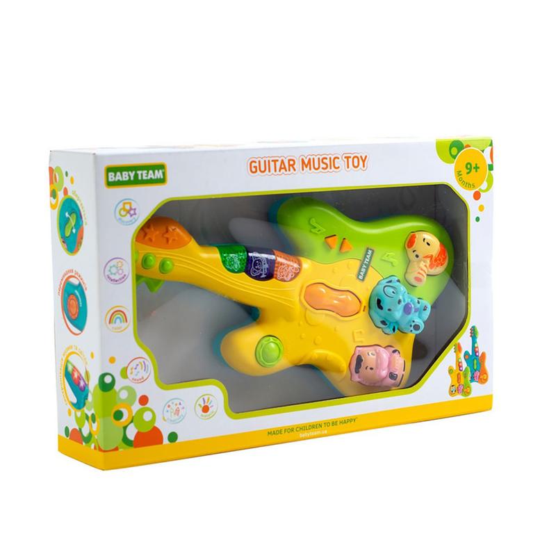 Музыкальная игрушка Baby Team Гитара - прекрасный подарок для ребенка. Особенности: музыкальная игрушка со световым, звуковыми эффектами и мелодиями; развивает координацию движений, концентрацию, внимание, мелкую моторику, слух и цветовое восприятие; имеет 4 режима работы, регулятор громкости, переключатель режимов; изготовлен из высококачественных и безопасных материалов, а также не содержат вредных веществ. Элементы питания: 3 батарейки АА (не входят в комплект).