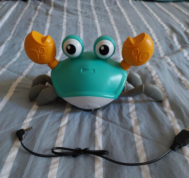 Интерактивная игрушка крабик, которая бегает крабик с музыкой и светом, сенсорные датчики работает от аккумулятора