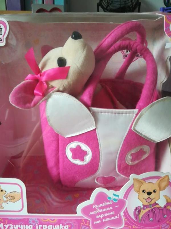 СОБАКОЧКА поет на украинском языке в комплекте из одежды и сумочка коробка 30-30, собачка20см