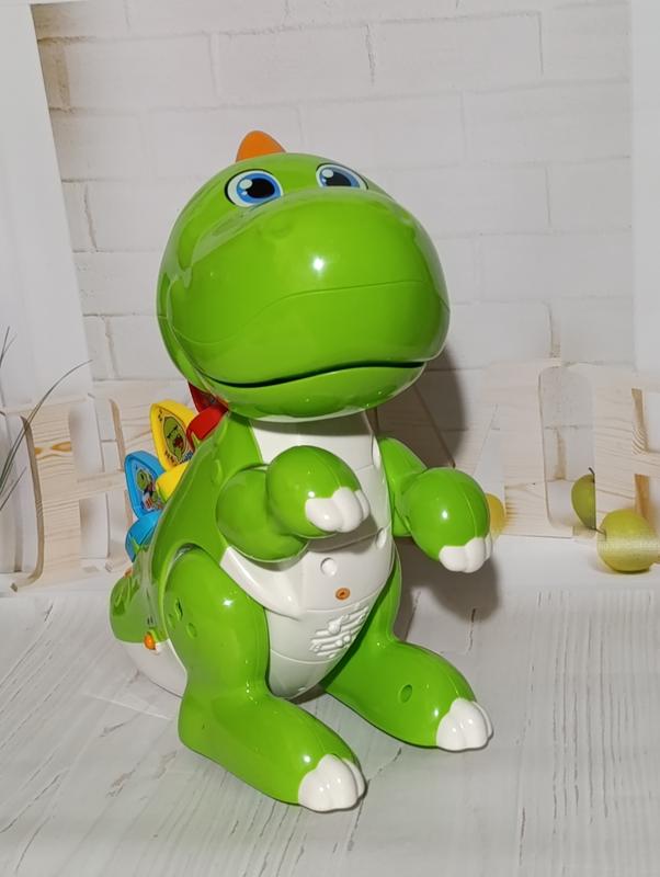 отличная интерактивная игрушка для малышей. Динозаврик сам двигается, поет, говорит. есть 8 вкладышей для игры с динозавриком, которые он реагирует по разному. два режима работы.