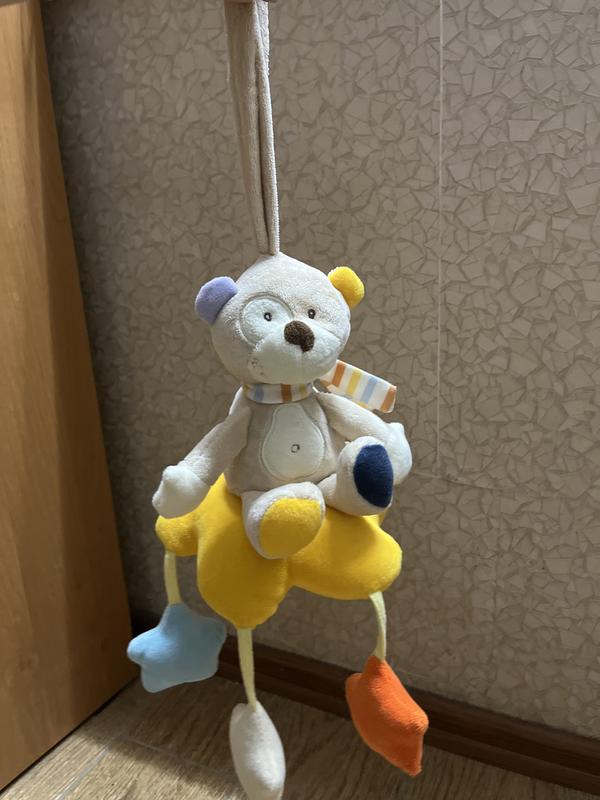 Дуже гарна та якісна іграшка. Привідтягуванні мотузки грає заспокійлива музика для сну.