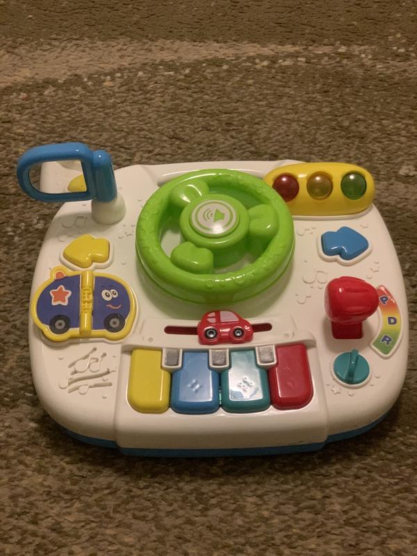 Кермо в ідеальному стані, всі деталі справні, працює від батарейок, кріпиться на коляску! Чудова іграшка для непосидючих малюків!