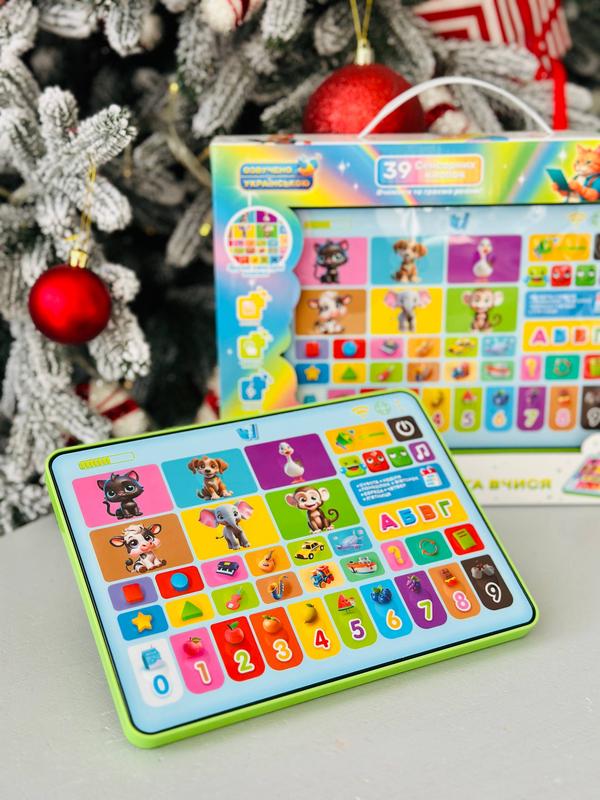 📚 Планшет “Играй и учись” – настоящая школа в маленьких ручках! 🎶 📋 Этот умный гаджет знает все на свете и с удовольствием поделится с вашей малышкой своими знаниями. Азбука, цифры, цвета, дни недели и названия зверюшек 🐶и еще много интересного и полезного скрывается в этом планшете. Игрушка также имеет режим экзамена, в котором ребенок сможет проверить свои знания. А в режиме кокаря планшет воссоздаст для малыша несколько интересных и поучительных сказок на украинском языке. Игра с этим гаджетом позволит ребенку не только развить свою память и когнитивные способности, но и поможет с ранним развитием речи. 🔹песни, сказки, стихотворения, факты о животных 🔹изучение букв и цифр 🔹яркие изображения и удобные кнопки 🔹озвучка украинской ❗️Размер планшета: 22х16х2 см