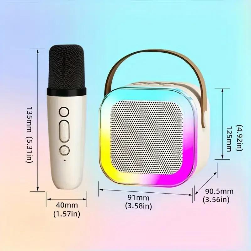 Уцененный товар. Нет микрофона, сам товар рабочий. Мини-детское караоке K12 с 1 беспроводным микрофоном, портативными беспроводными динамиками со стерео басами Описание Микрофон: Звукосниматель: конденсаторный микрофон на задней стойке. Рабочее напряжение: 3,7 В Диапазон частот: 20 Гц-20 кГц Характеристики аккумулятор: 1200 мАч 1200 мАч Адаптер питания DCSV≤1000MA (можно использовать с зарядным устройством для мобильного телефона) Время зарядки 3,5-4 часа Версия БТ: версия 5,2