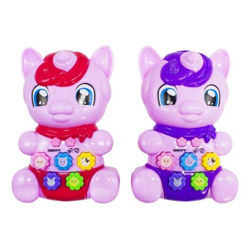 Уценка. (нет глаз ) Музыкальная игрушка "Пони". Воспроизводит различные звуки, множество мелодий, считает от 1 до 10 на английском языке. Имеет кнопку вкл/выкл и кнопку смены режима. Работает на батарейках. 2 вида в ассортименте. Язык: Английский Упаковка: Пакет Цвет: Розовый Тип эл-тов питания: Батарейки (ААА) Кол-во эл-тов питания: 3 Эл-ты питания в комплекте: Нет Вес в упаковке: 80 г Габариты в упаковке: 14 x 19.5 x 4 см Габариты без упаковки: 11 x 15 x 4 см Cтрана производитель: Китай Материал: Пластик Комплектация: Музыкальная игрушка