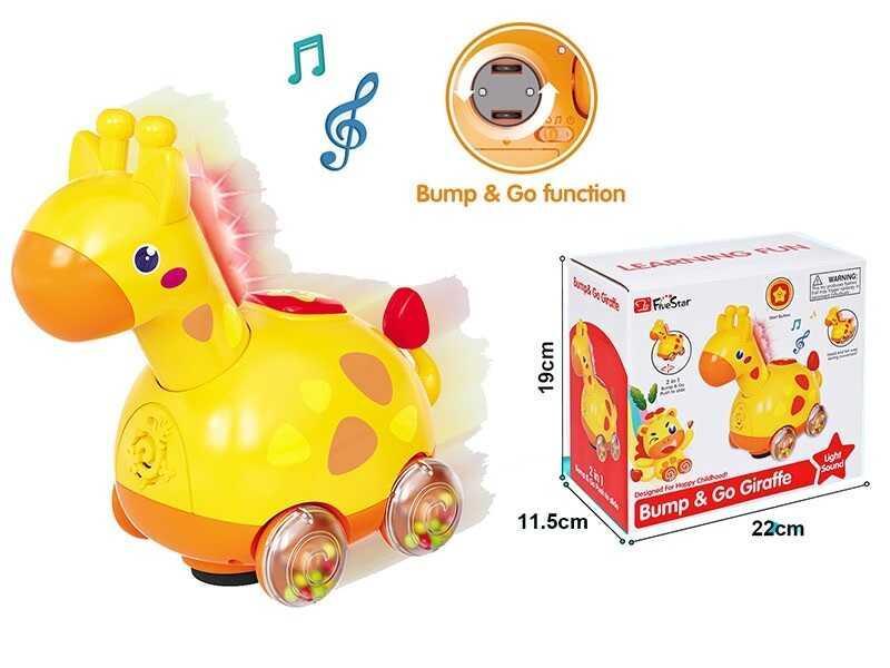 Яркая музыкальная жирафа приглашает к захватывающим танцам! Эта чудесная игрушка не только развеселит малыша, но и подарит незабываемые моменты радости и веселья. Просто нажмите кнопку на спине жирафы, и она начнет воспроизводить веселую музыку, звуки животных и яркие световые эффекты, наполняя комнату яркими цветами. Жирафа не просто стоит на месте — она танцует, двигает головой и хвостиком, а также ездит благодаря специальному колесу свободного движения, избегая всех препятствий на своем пути! Эта игрушка имеет два режима работы: музыкальный и танцевальный, что делает ее еще более интересной. Основные особенности: - Игрушка в виде жирафы размером 10.5х16х16 см; - Два режима работы: воспроизведение мелодий и активный танец; - Яркая подсветка во время игр; - Движение головы и хвостика во время танца; - Колесо свободного движения для активных поездок; - Жирафа работает на 3 батарейках типа "AAA" (не входят в комплект); - Цветные шарики в колесах для дополнительного звукового эффекта; - Изготовлена из безопасного для детей пластика.