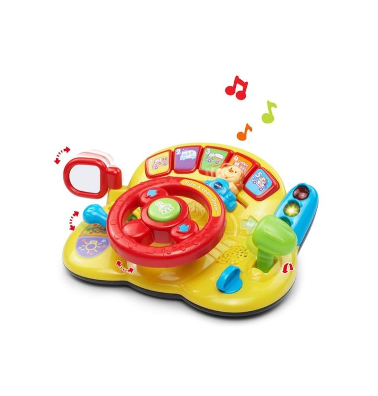 Музыкальный интерактивный руль Vtech Стан замечательный Интерактивный руль VTech "Turn and Learn Driver" - научит водить Вашего малыша с ранних лет. Фигурка собачки будет двигаться в зависимости от породы руля. Для детей от 6 месяцев 5 кнопок издают звуки животных Веселый дизайн игрушек для детского автомобиля поощряет воображаемую игру со светофором, рычагом сигнала, вызывающего забавные звуки и музыку Механизм переключения передач Работает от батареи 2шт