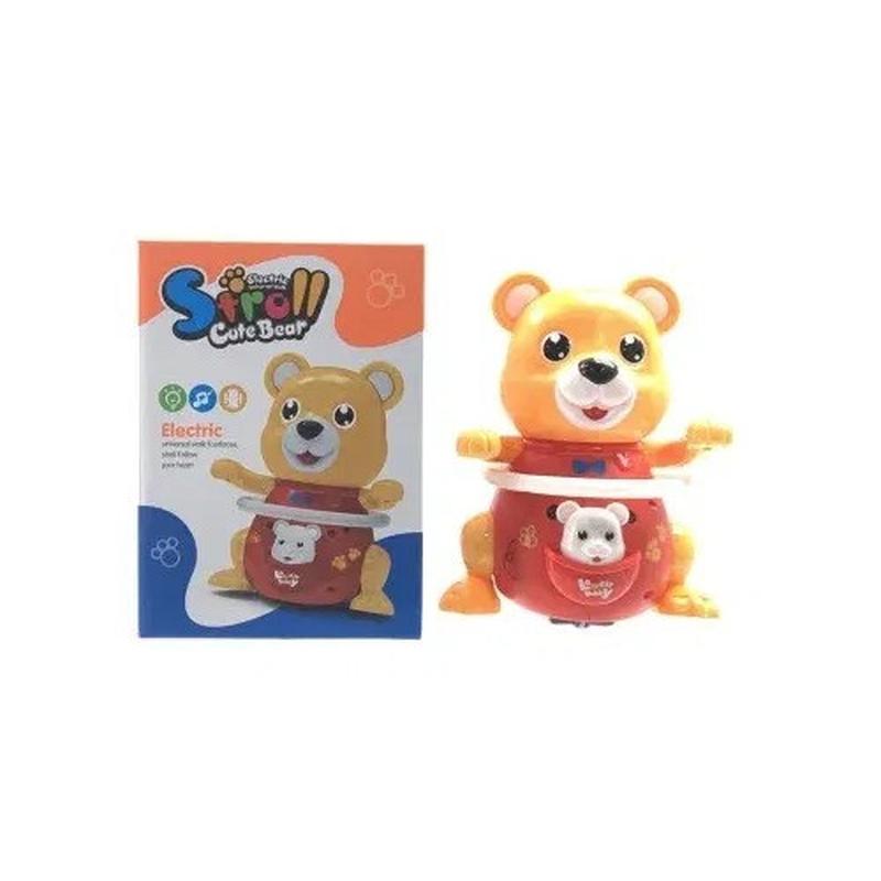 Детская игрушка из пластика, музыкальная, подвижная, светящаяся, в виде медведя, вращает обруч размером 12х17х15 см.