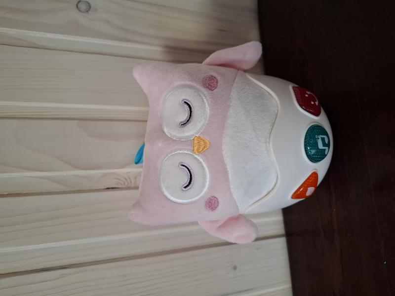 игрушка выполнена в виде совы; размер неваляшки составляет 16х12х18 см; верхняя часть игрушки мягкая, а нижняя пластиковая; с игрушкой можно играть, как с неваляшкой; также птичка может воспроизводить различные звуки и мелодии; при воспроизведении звуков цветные кнопки подсвечиваются ярким светом
