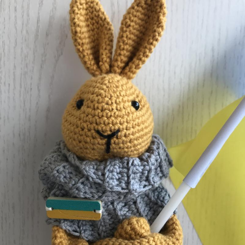 Еко іграшка кролик Висота - 28 см( з вушками) Наповнювач - холофайбер Нитки - бавовна Руки рухаються Кролик під заказ