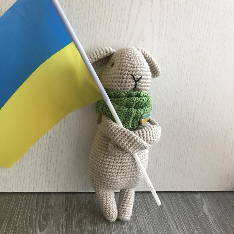 Кролик- патріот Висота- 28 см. Ноповнювач- холофайбер Нитки- бавовна Ручки рухаються