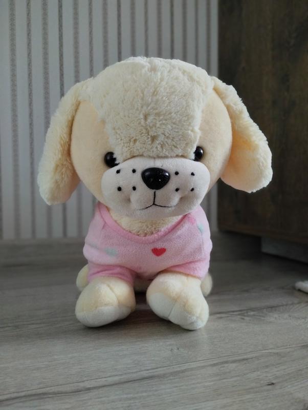 Гарна, м'яка іграшка собачка. Приємна на дотик. Без дефектів. Купили дитині на день народження і вона трішки погралася виросла і вже не подобається!