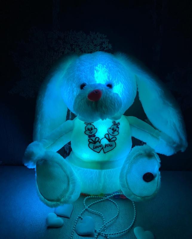 Продам дуже милого світящогося зайчика. Іграшка працює від 3 пальчикових батарейок (у комплект не входять). Розмір зайчика 28см.