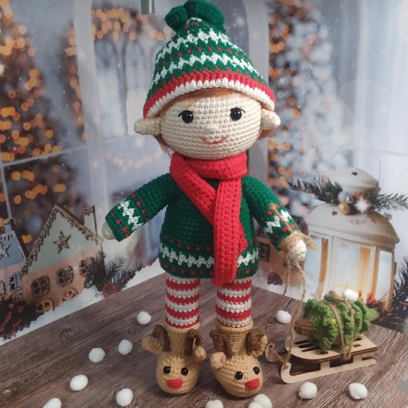У нас за окном дождь...А в сказке Эльфик каждый раз готовится к новогодним праздникам. Вот и елку раздобыл, и снегу много в доме принес Эльфик связан в тестировании мк. Оте сапоги меня покорили! Одежда не снимается, только аксессуары (шапка и шарф). В ножках и ручках проводной каркас для гибкости и прочности. Елочку Эльфик приготовил Вам в подарок!
