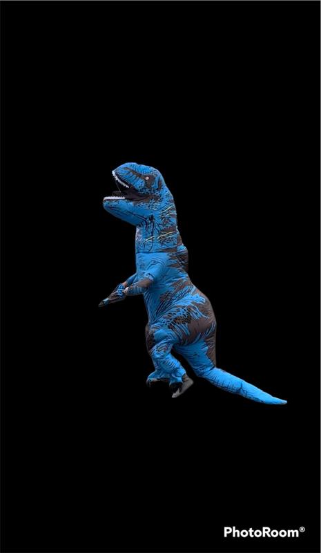 Большой надувной динозавр!Высота 2.60 я 1.77,вес 73 кг,помещался свободно,места хватает внутри в полне!Работает надувной механизм от батарееек и так же от Павер Банка!Покупал для ребенка на один раз!Пишите все подробно расскажу!