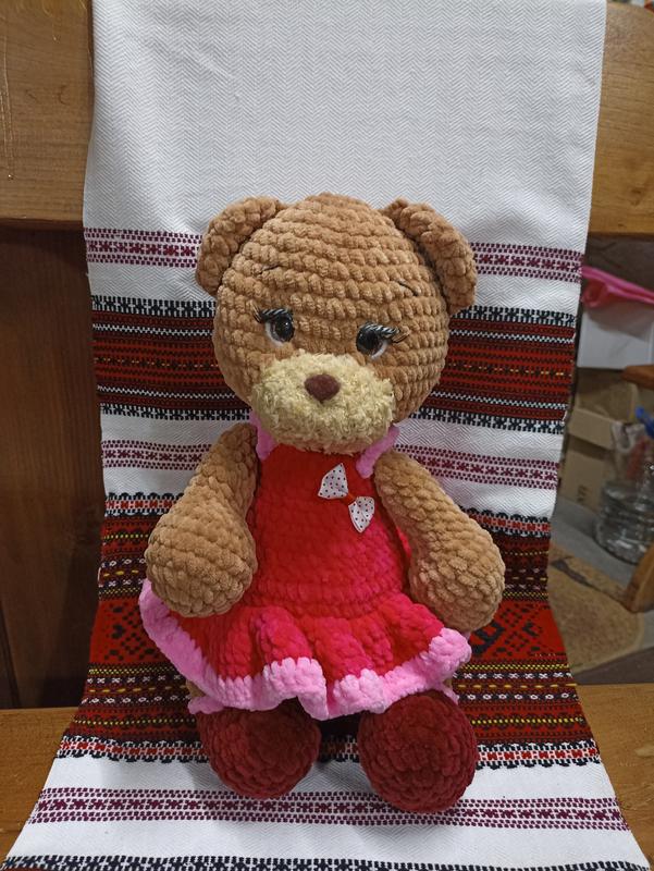 Мягкая игрушка Мишка, связанная крючком из гипоаллергенной пряжи, наполнитель-холофайбер, нос и глаза на безопасном креплении. Высота игрушки 30-33см. Возможно исполнение игрушки под заказ в другом цвете и размере.