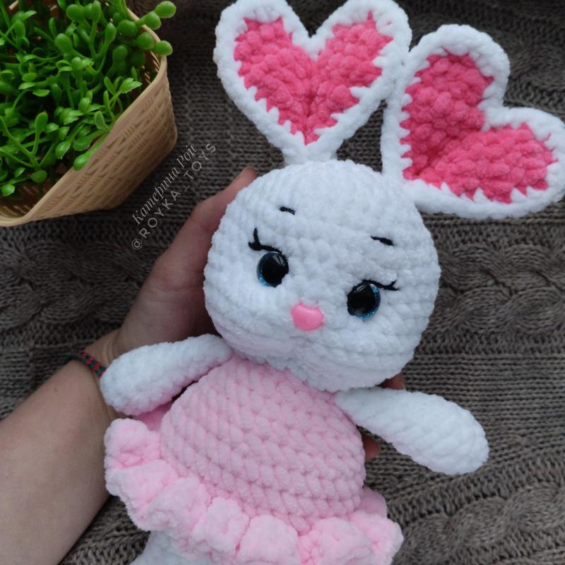 Плюшова зайка з вушками у формі сердечка вага - 125 г розмір - 21,5 см (28 см з вушками) оченята на безпечному кріпленні Чудовий подарунок на День Святого Валентина, на День Народження і просто так