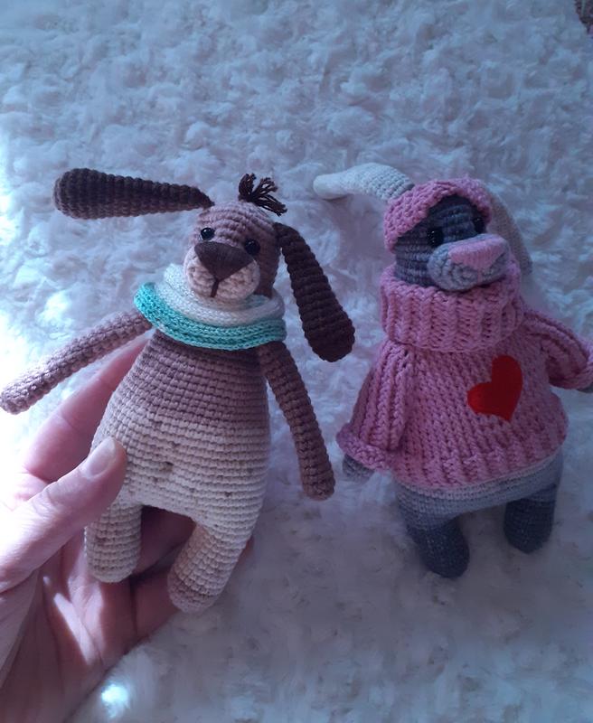 Найкращий розмір для дитячих ручок👐 Зробіть подарунок для себе чи найрідніших. Вони такі милі, їх не можна не полюбити 🤗, як дорослому так і дитині. Плюси в'язаних іграшок: зроблені з якісних матеріалів, індивідуальні, неповторні, розвивають дрібну моторику, тактильні відчуття та фантазію. Зв'язано з любов'ю ♥️ задля здійснення дитячої мрії. 👉Ціни від 300 грн 📌Ведмедик з капюшоном- 300 грн Продано 📌Зайчик в рожевому вязаному светрику і пов'язкою, які знімаються 420 грн 📌собачка з в'язаним шарфиком 350 грн.