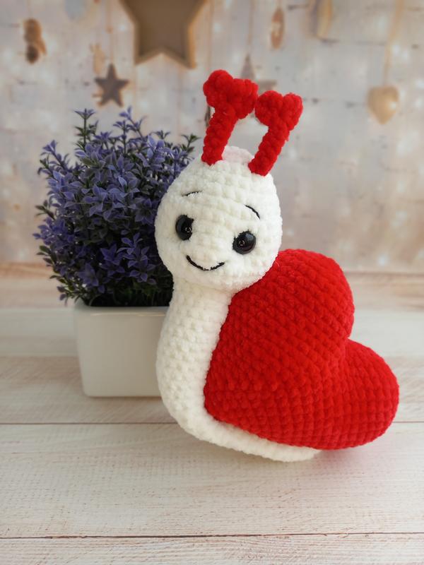 Плюшевая улитка высотой 22 см вместе с рожками. Есть в наличии, также возможен повтор в другом цвете.