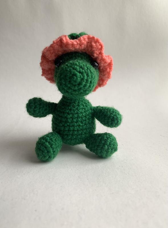 В’язана іграшка крокодил 🐊 Висотою 9 см Капелюшок знімається Можливі інші кольори та розміри🌈 Ціни залежать від матеріалу та розміру