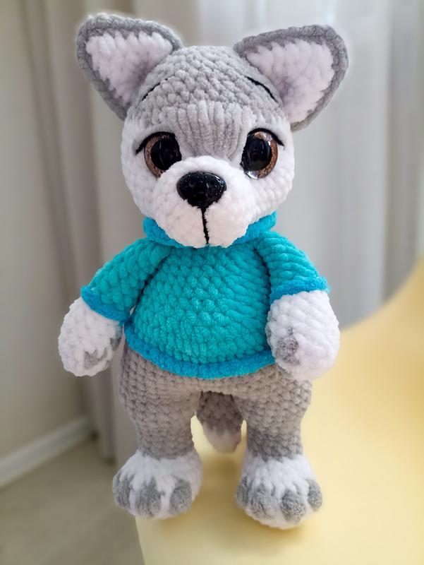 Волк из плюшевой пряжи глаза на безопасном креплении наповнювач холофайбер в наличии ✅ возможен повтор в другом цвете 🌈 размер 29-30 см.