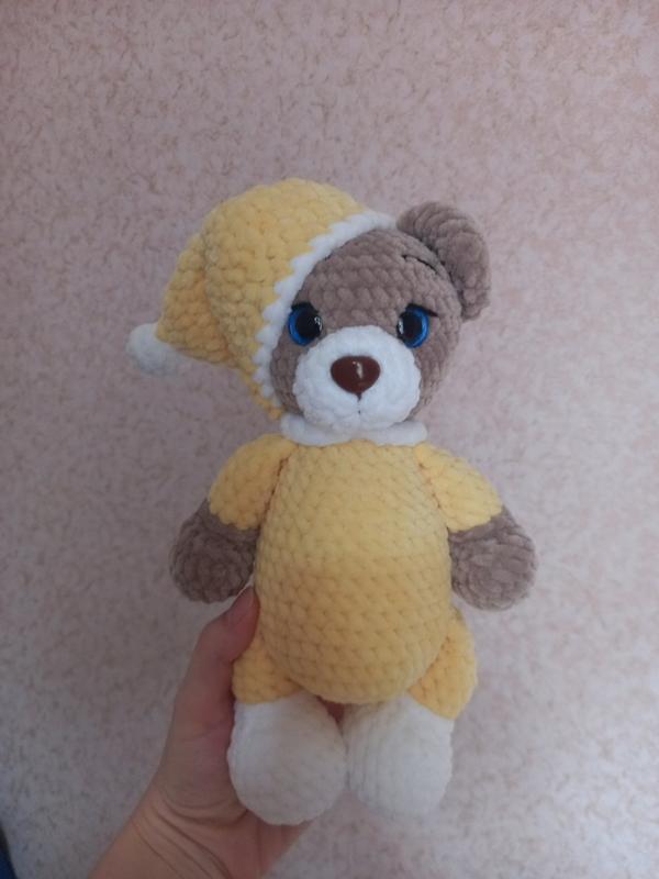 Іграшка зв'язана з гіпоалергенної пряжі, наповнювач холлофайбер, очка та носик на безпечному кріпленні. Зріст ведмежатка 24см. Можливий повтор в іншому кольорі. Ручна робота.