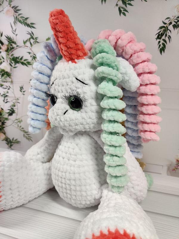 Единорожка которая покорила сердца малышей.🥇 Рост 32 см. Глаза на безопасном креплении.☺️ Наполнитель холлофайбер. Выполнение из гипоаллергенной пряжи.🧶 Возможен повтор в разных цветах. Цена 550 грн.💵
