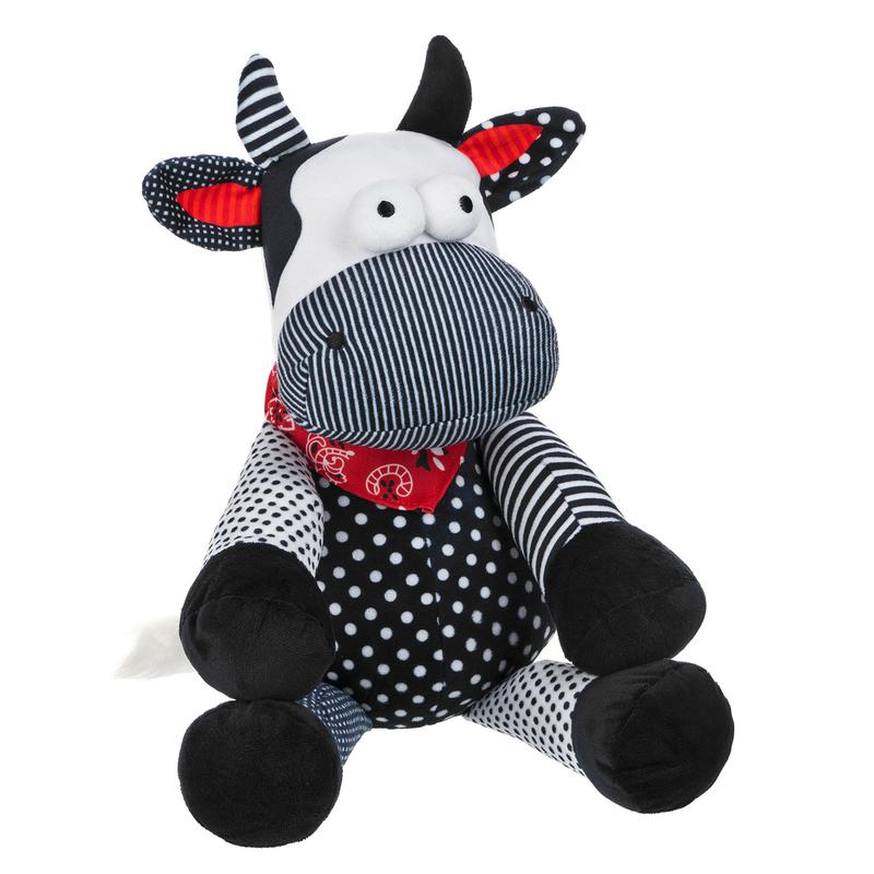У мягкой игрушки Коровы большие глаза, а голова, рожки и туловище привлекают внимание красочным сочетанием чёрно-белых материалов и узоров. На шее - красный шарф с принтом. Благодаря качественному и безопасному материалу Корова невероятно нежная и приятная на ощупь, и, несомненно, ребёнку понравится её трогать и обнимать. С коровой будет приятно вместе и играть, и засыпать. Благодаря компактному размеру игрушку удобно брать с собой в детский сад, на прогулку или в гости. Корова понравится также взрослым, украсит интерьер, поднимет настроение. Высота игрушки 30 см и она является маленькой копией коровы с артикулом A1057/24. Корова является символом предстоящего 2021 года. Она будет приятным подарком на Новый год и Рождество Христово. - Торговая марка: «Same Toy». - Рекомендуется детям в возрасте от 3 лет. - Материал: полиэстер. - Изготовлена из экологически чистых, нетоксичных материалов. - Не деформируется и не теряет внешний вид при стирке. - Не пылит и не вызывает аллергии. - Упакована в пакет. - Размер упаковки: 320×150×420 мм. - Вес: 230 г.