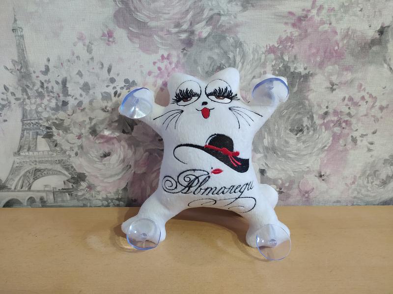 Игрушка кот саймона в машину c вышивкой кошка автоледи белый подарок девушке 01588