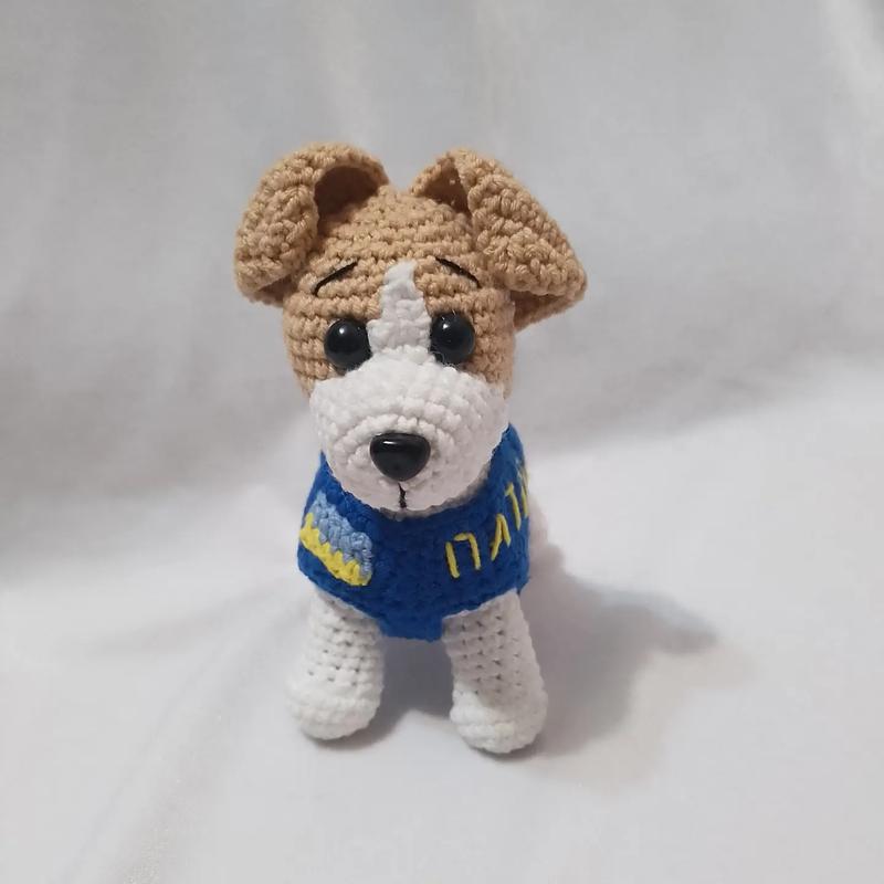 Пес Патрон связан из полухлопковой пряжи. наполнитель холлофайбер. глаза на безопасном креплении. Жилет снимается