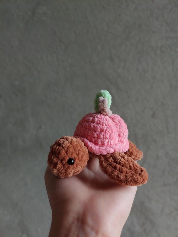 черепаха персик плюшевая игрушка ручной работы гипоаллергенная пряжа глазки притачные Наповнювач холофайбер размер~ 15 см возможность выполнить другой фрукт или же в других цветах liuta_handma